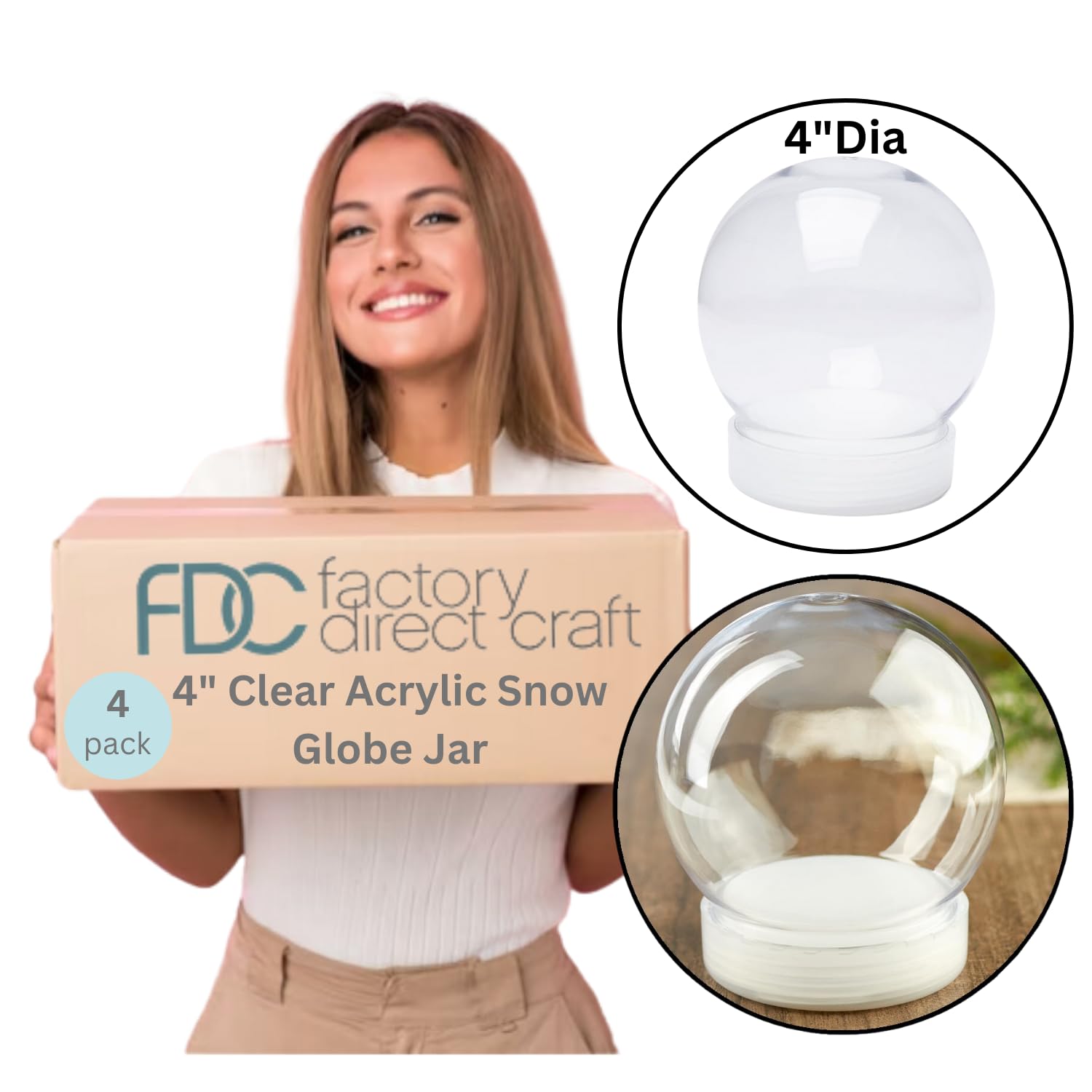 Amazon Com Clear Acrylic Snow Globe Jars Set Of 4 By Factory Direct Craft Transparent Craft Globe For Christmas Weddings And Everyday Displays 4 Inches Dia Home Kitchen